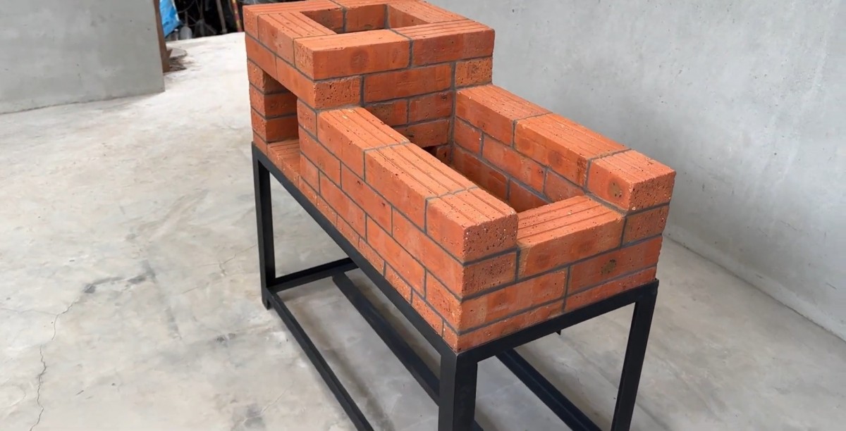 Hlavní výhodou těchto kamen je jejich praktičnost a překvapivě nízké pořizovací náklady. Díky tomu, že celá kamna leží na pevném ocelovém stole, je pracovní plocha v ideální výšce, takže se při vaření ani grilování nemusíte nepohodlně hrbit. Spodní část stolu navíc tvoří přirozený a suchý zásobník na palivové dřevo, které máte neustále po ruce. Další obrovskou předností je volba materiálů. Zatímco komerční grily často využívají drahé šamotové tvarovky a speciální tmely, tento projekt sází na obyčejné plné pálené cihly a přírodní maltu z jílu, písku a vody. Jílová směs výborně snáší tepelné změny, nepraská tak snadno jako tvrdý cement a v případě potřeby se dá stavba velmi snadno rozebrat nebo opravit.