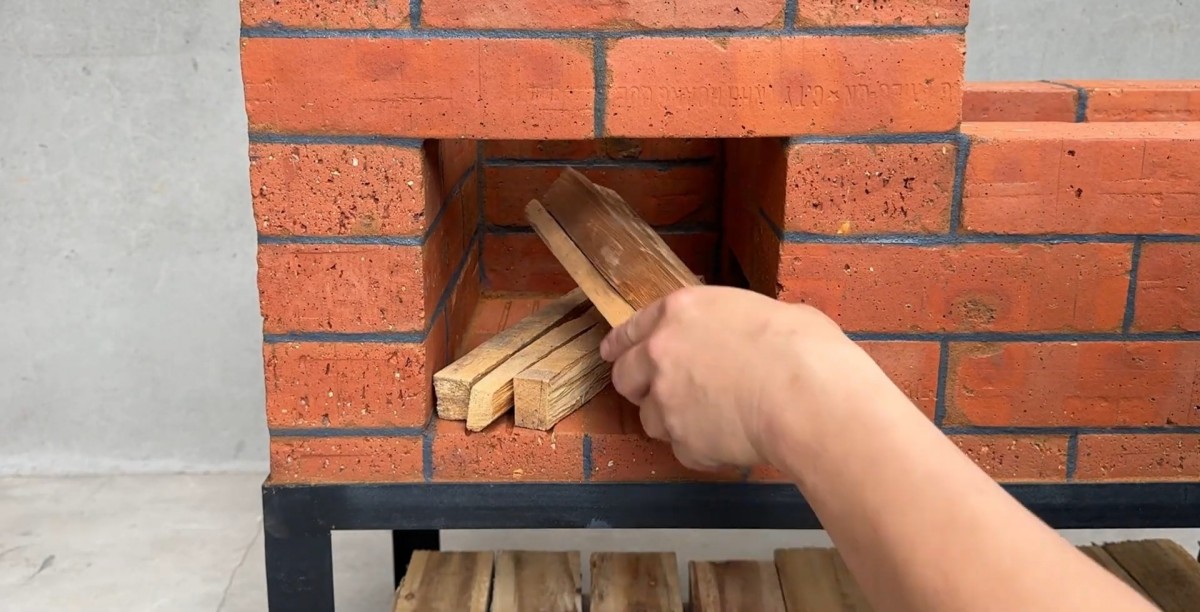 Hlavní výhodou těchto kamen je jejich praktičnost a překvapivě nízké pořizovací náklady. Díky tomu, že celá kamna leží na pevném ocelovém stole, je pracovní plocha v ideální výšce, takže se při vaření ani grilování nemusíte nepohodlně hrbit. Spodní část stolu navíc tvoří přirozený a suchý zásobník na palivové dřevo, které máte neustále po ruce. Další obrovskou předností je volba materiálů. Zatímco komerční grily často využívají drahé šamotové tvarovky a speciální tmely, tento projekt sází na obyčejné plné pálené cihly a přírodní maltu z jílu, písku a vody. Jílová směs výborně snáší tepelné změny, nepraská tak snadno jako tvrdý cement a v případě potřeby se dá stavba velmi snadno rozebrat nebo opravit.
