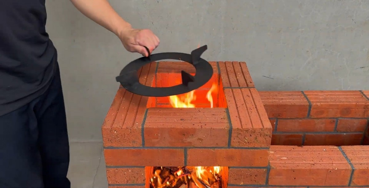Hlavní výhodou těchto kamen je jejich praktičnost a překvapivě nízké pořizovací náklady. Díky tomu, že celá kamna leží na pevném ocelovém stole, je pracovní plocha v ideální výšce, takže se při vaření ani grilování nemusíte nepohodlně hrbit. Spodní část stolu navíc tvoří přirozený a suchý zásobník na palivové dřevo, které máte neustále po ruce. Další obrovskou předností je volba materiálů. Zatímco komerční grily často využívají drahé šamotové tvarovky a speciální tmely, tento projekt sází na obyčejné plné pálené cihly a přírodní maltu z jílu, písku a vody. Jílová směs výborně snáší tepelné změny, nepraská tak snadno jako tvrdý cement a v případě potřeby se dá stavba velmi snadno rozebrat nebo opravit.