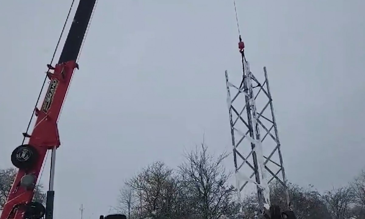 Nakonec byla zvolena konstrukce na míru. Nejprve se vylily betonové patky, zhruba měsíc se čekalo na vytvrdnutí a poté se pomocí jeřábu sestavil stožár ze čtyř dílů