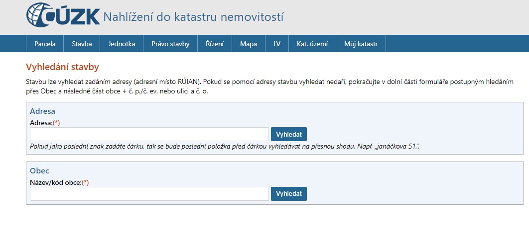 Samozřejmě si můžete díky nahlížení do katastru nemovitostí vyhledat také jakoukoliv stavbu