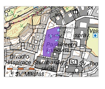 Zde vidíme zakreslení budovy na mapě