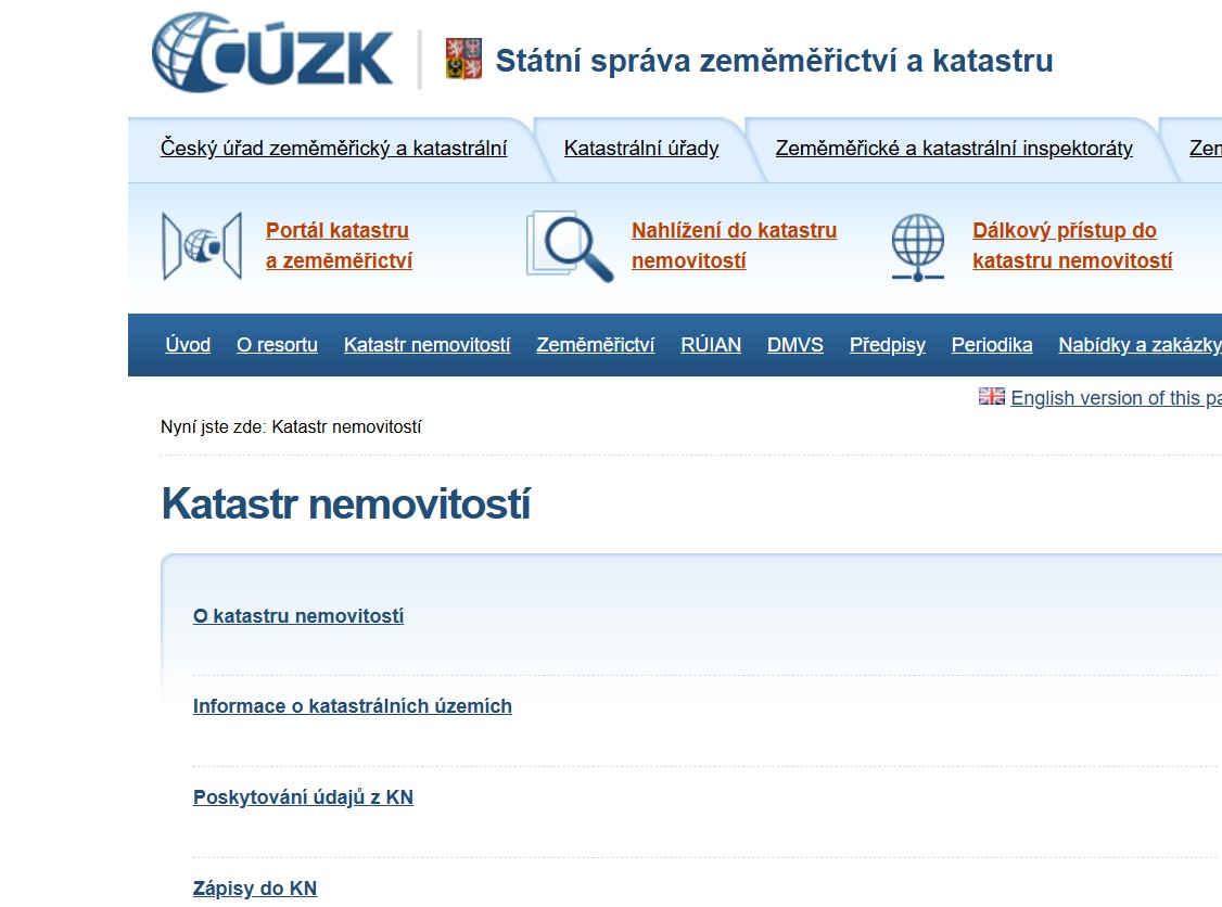 Na stránkách ČÚZK klikněte na možnost nahlížení do katastru nemovitostí