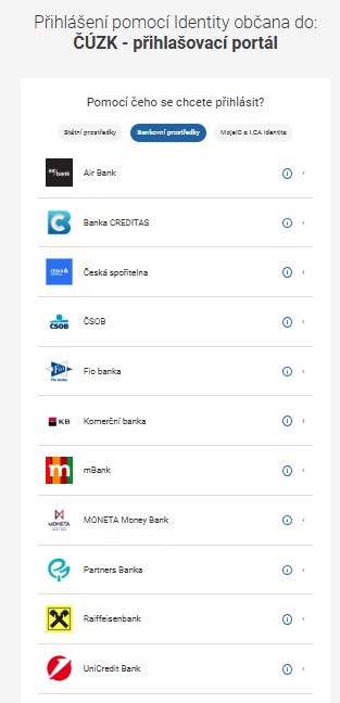 Nejjednodušší je však přihlásit se přes bankovní identitu. Vyberte svou banku a přihlaste se jako do internetového bankovnictví