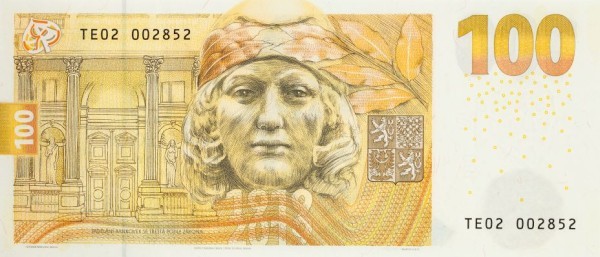 Revers pamětní české bankovky 100 Kč vz. 2019