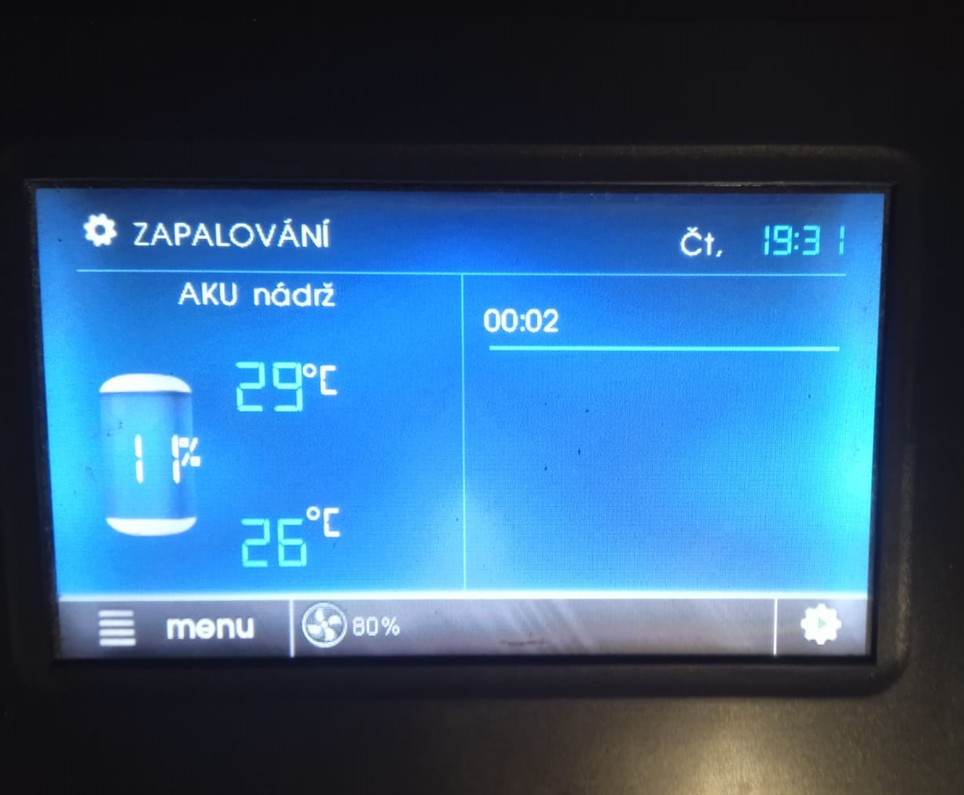 Po naložení kotle a jeho uzavření, kotel začíná v 19:31 rozpalovat plamen k vytvoření potřebných teplot pro další práci. V tuto dobu Miloš odchází z kotelny, kotel se už postará o vše potřebné sám