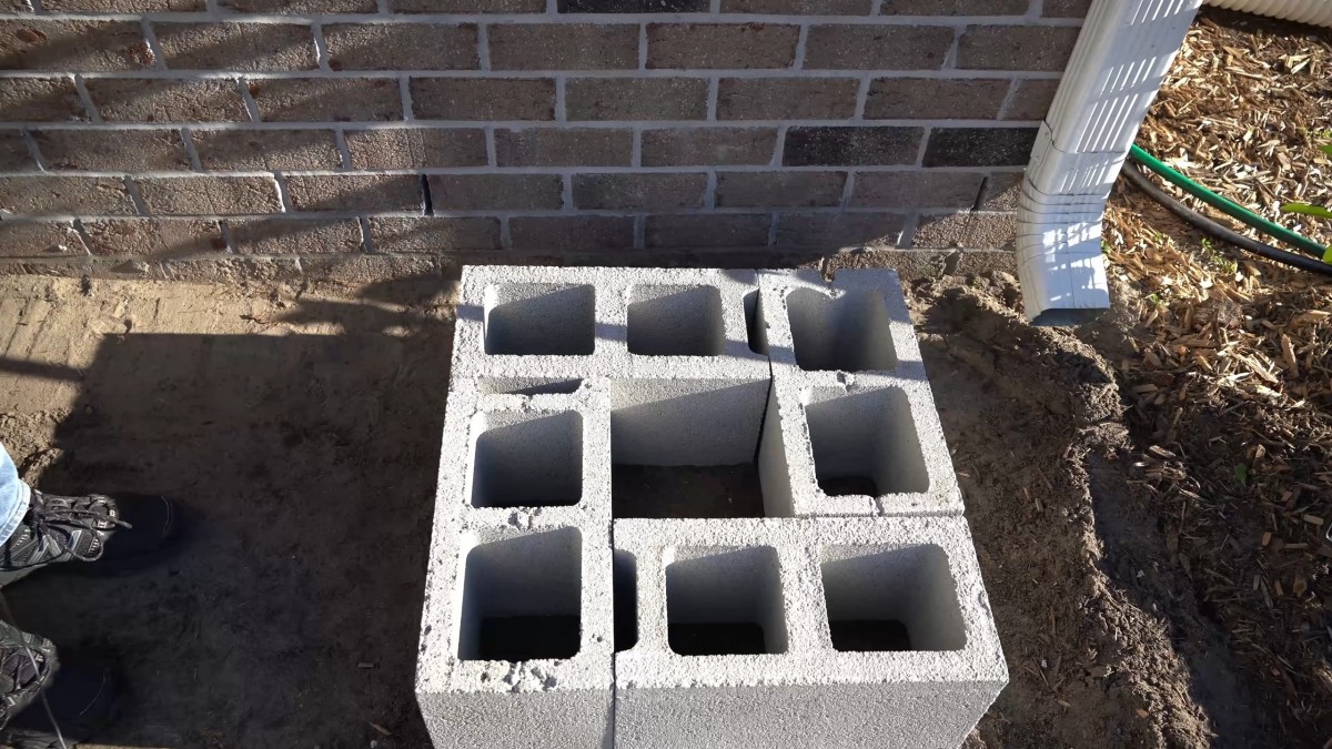 Dokončete základnu z betonových tvárnic. Pro správné gravitační proudění postavte jeden podstavec vyšší než druhý.