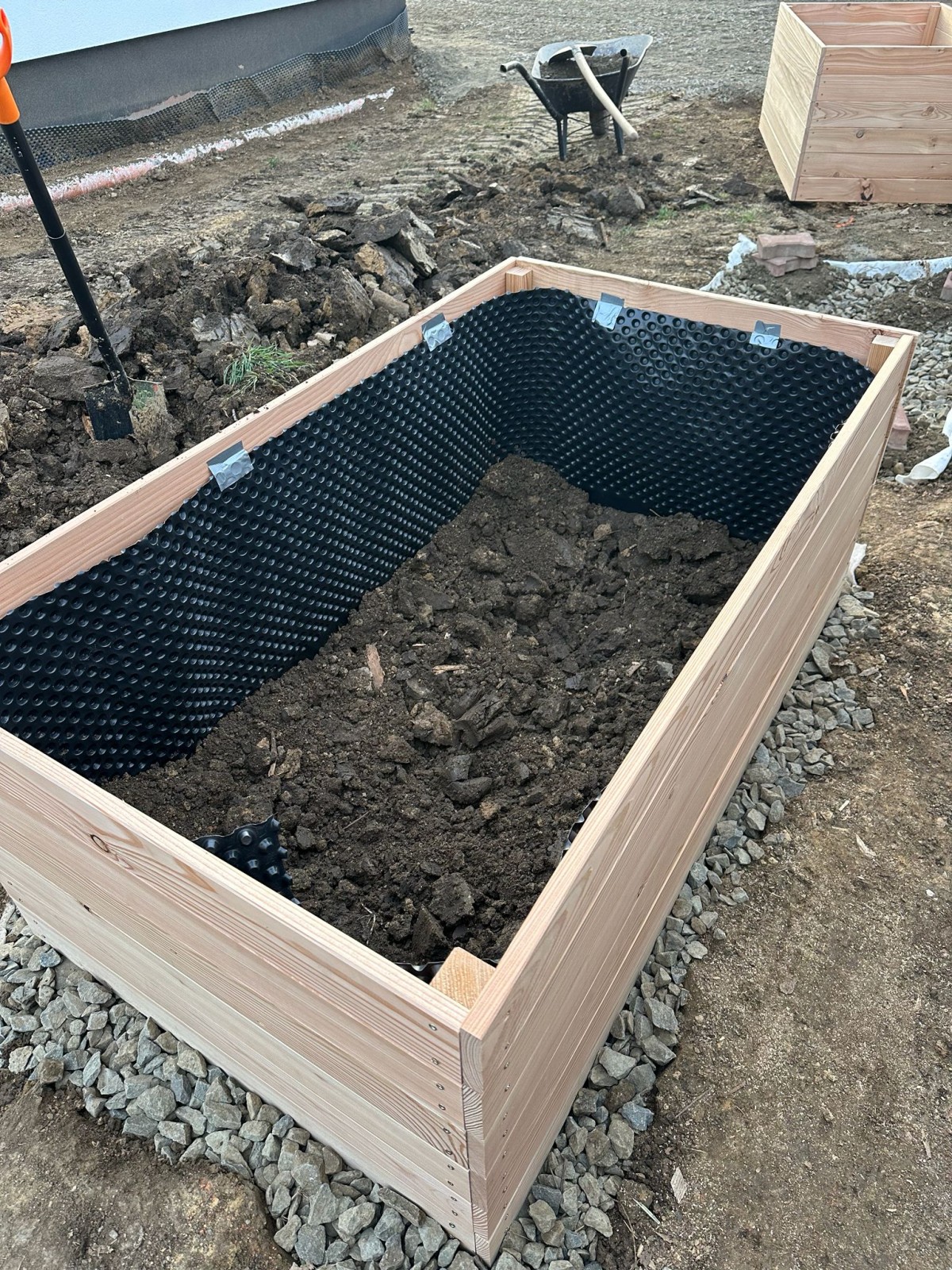 Nopovou folii si můžete provizorně přilepit izolepou, aby se vám skladba záhonu snáze vrstvila