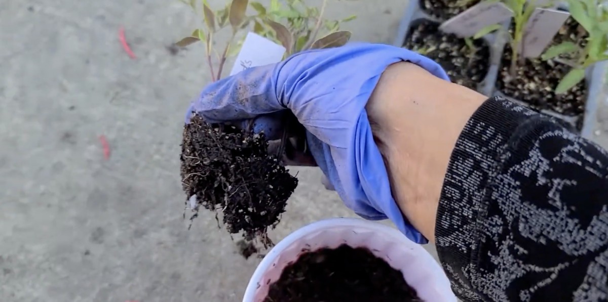 Sazenice se vyjme i s kořenovým balem a bez obav z částečně propletených kořenů se přesadí do hlubší jamky v připraveném kelímku