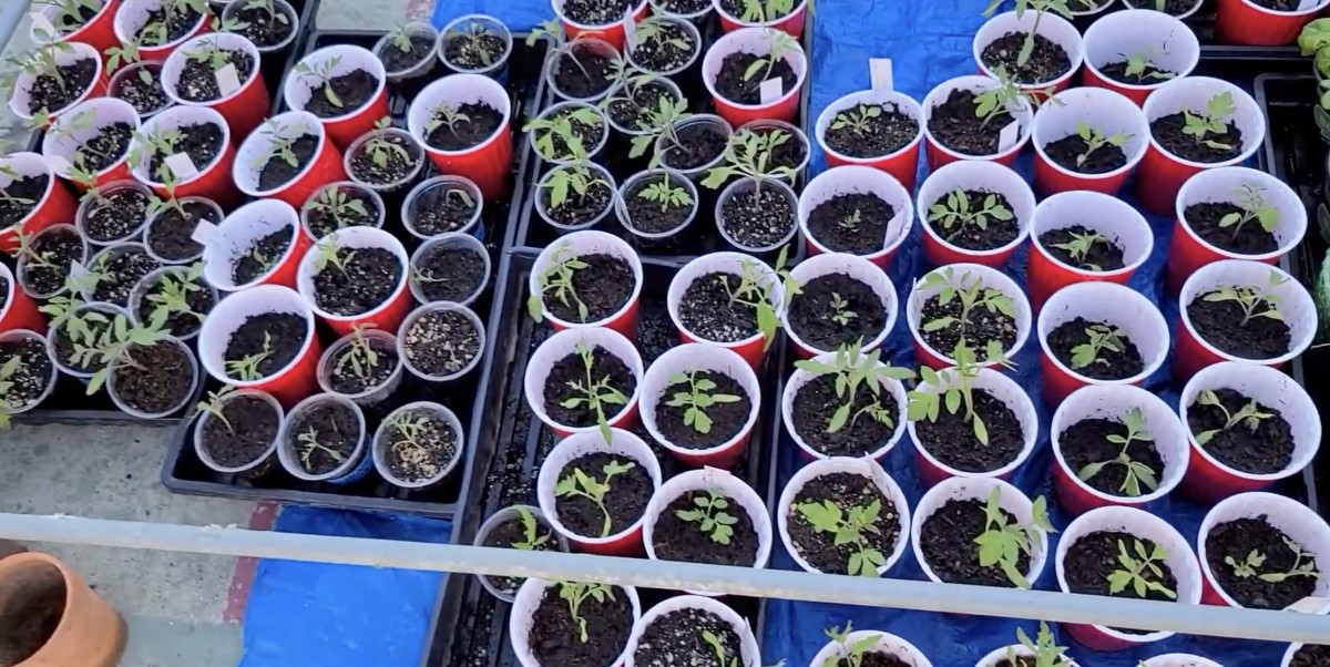 Rajčata sází pracněji než většina zahrádkářů. „Je to náročnější, ale rostliny pak rostou rychleji,“ říká