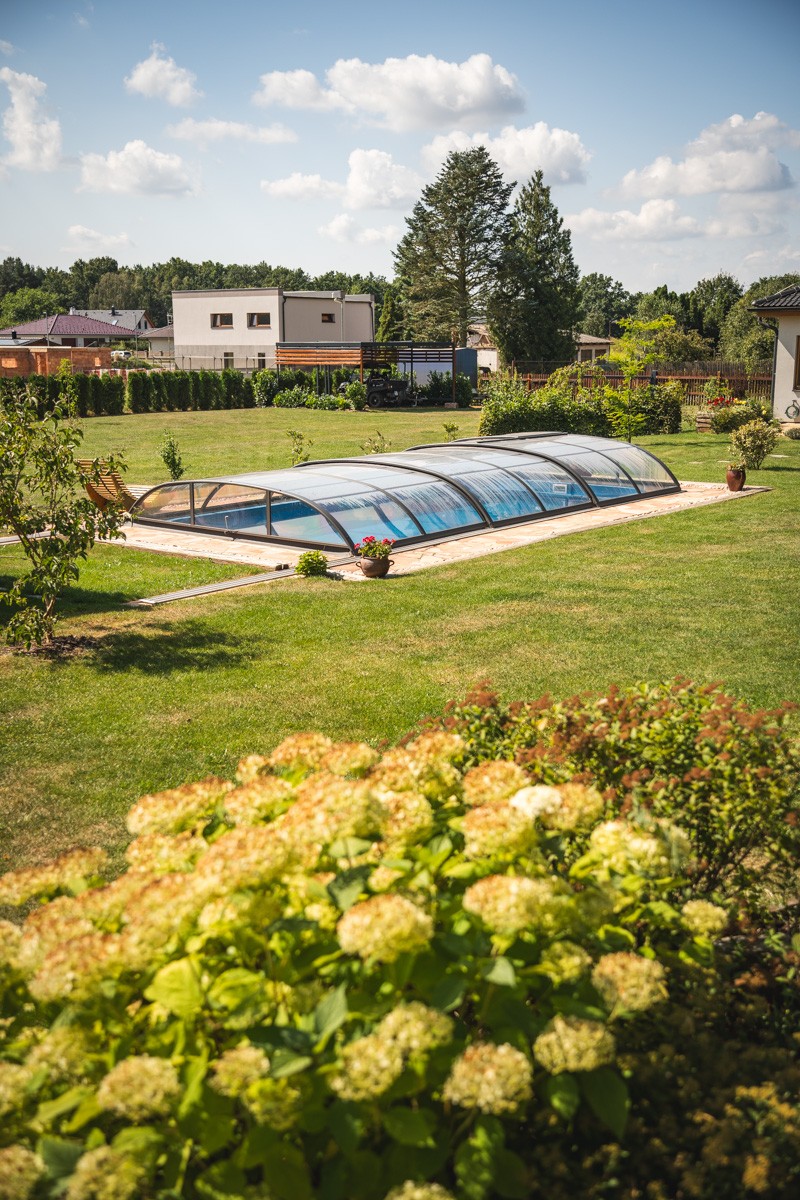 Na zahradě mají majitelé 30m vrt, ze kterého se čerpá voda do nádrží. Z těchto nádrží poté zalévají manželé zahradu