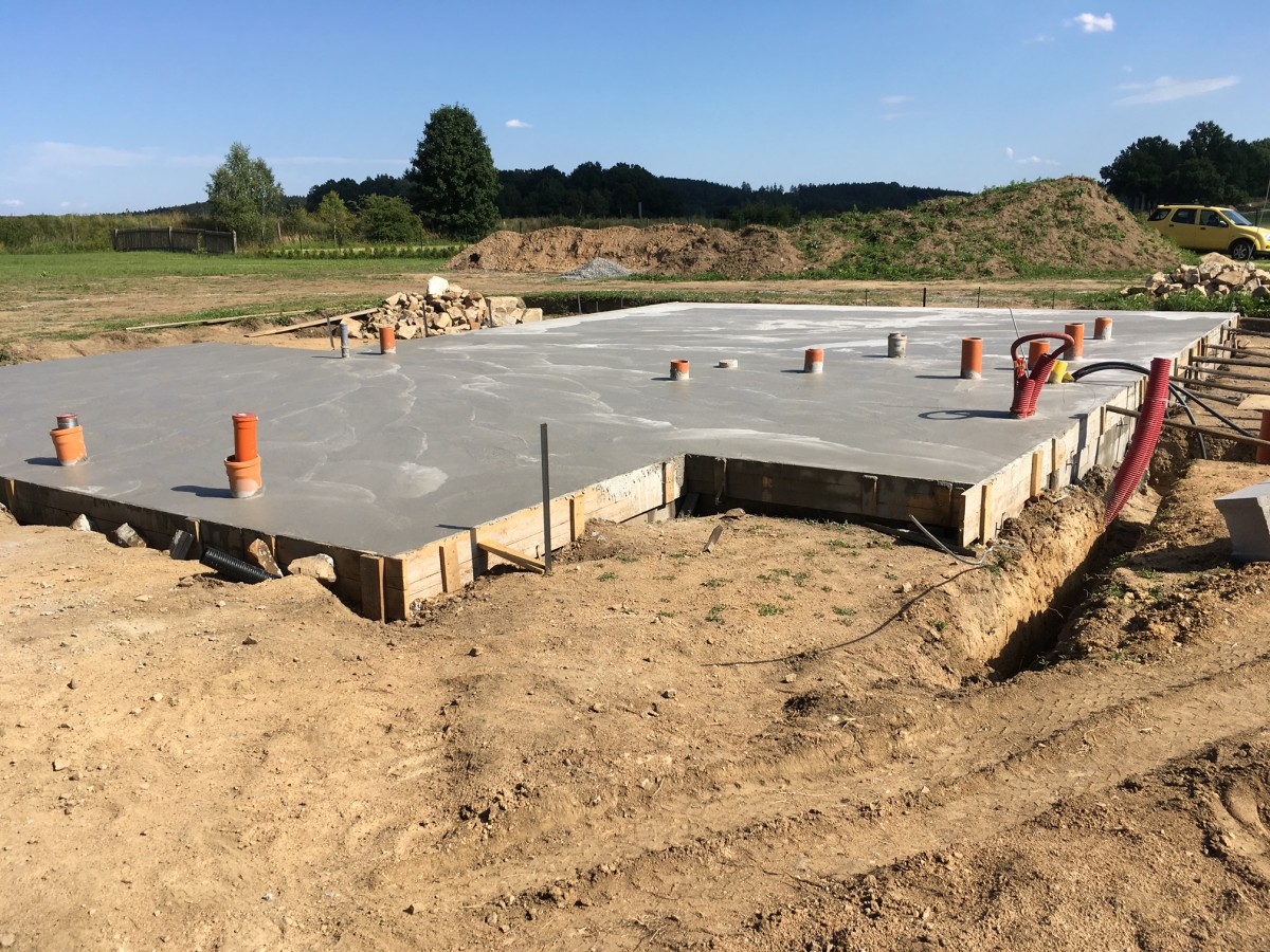 Základovou desku stavěli manželé svépomocí. Realizace probíhala na přelomu června a července, v době, kdy jsme mohli zaznamenávat vysoké teploty (40 °C)