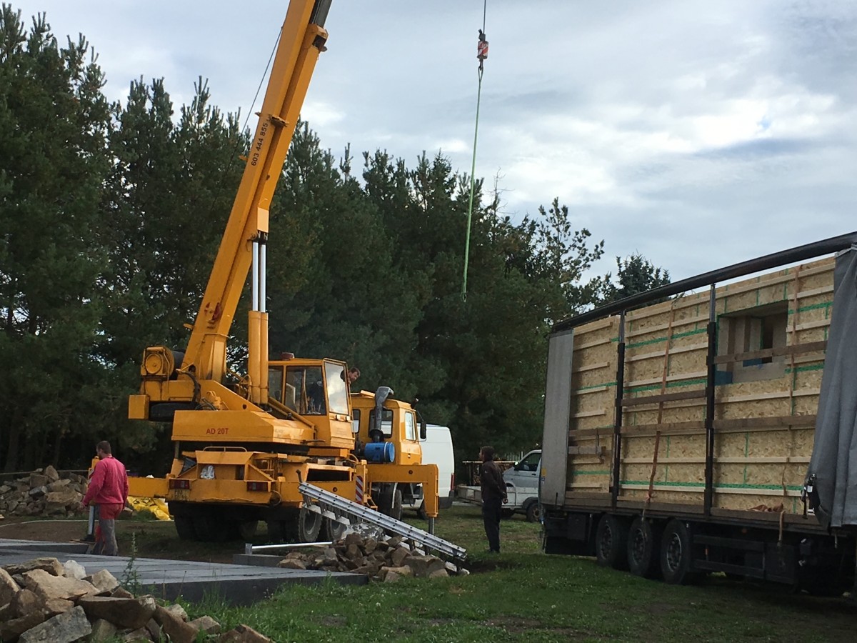Zhruba v polovině září dorazil manželům rodinný dům. Hrubá stavba byla hotová za 1 týden