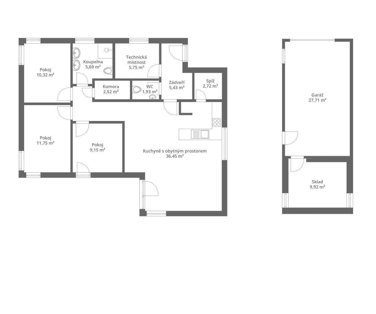 Zde vidíte dispoziční rozdělení rodinného domu. Majitelé si ho zrcadlově otočili, protože by jinak vycházela terasa na jihozápad