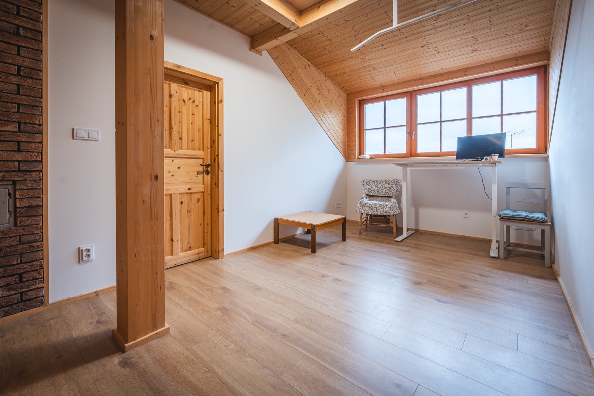 První patro vytápí majitel přímotopy. Za elektřinu zaplatí měsíčně 2 000 Kč