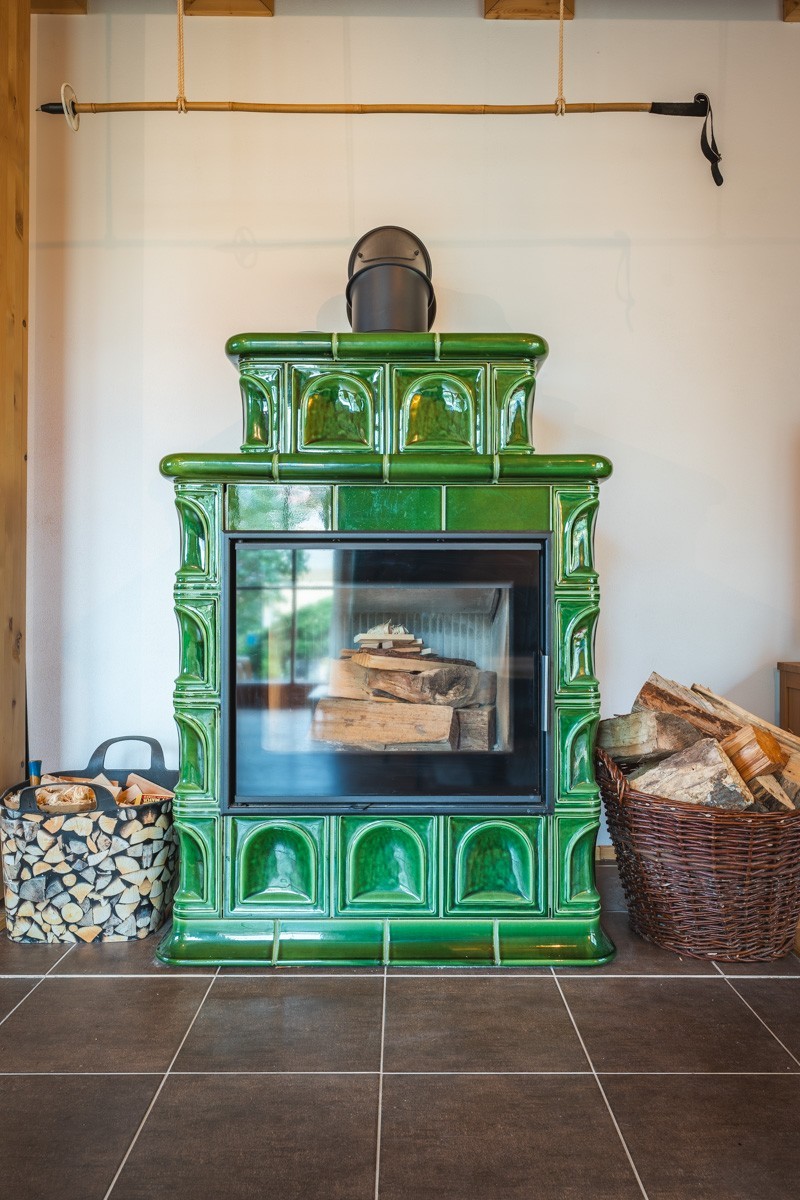 Kachlová kamna mají výkon 8 kW a váží zhruba 300 kg. Kvůli jejich tíze musel majitel udělat pod kamny betonový základ