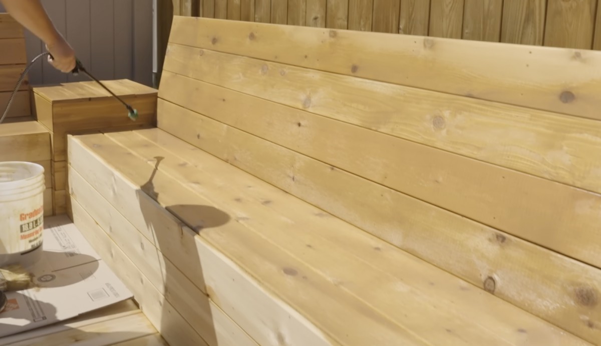Nakonec stačí celý povrch rovnoměrně natřít ochranným nátěrem, který zvýrazní kresbu dřeva a zároveň ho ochrání před vlhkostí, sluncem i běžným opotřebením