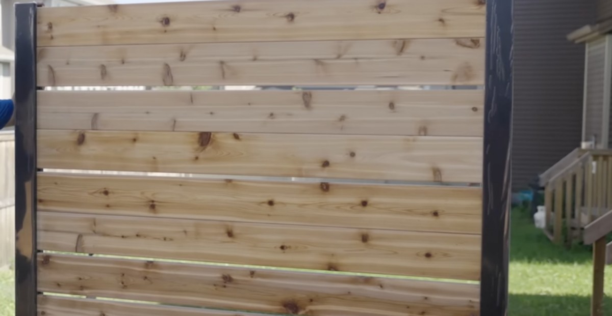 Na ocelový rám lze postupně připevnit vodorovná prkna, která vytvoří jednoduchou dřevěnou zástěnu poskytující soukromí i ochranu před větrem