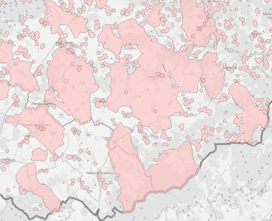 Velké červené fleky se nachází také v okolí Uherského Brodu. Na velké části území budou mít pyromani utrum
