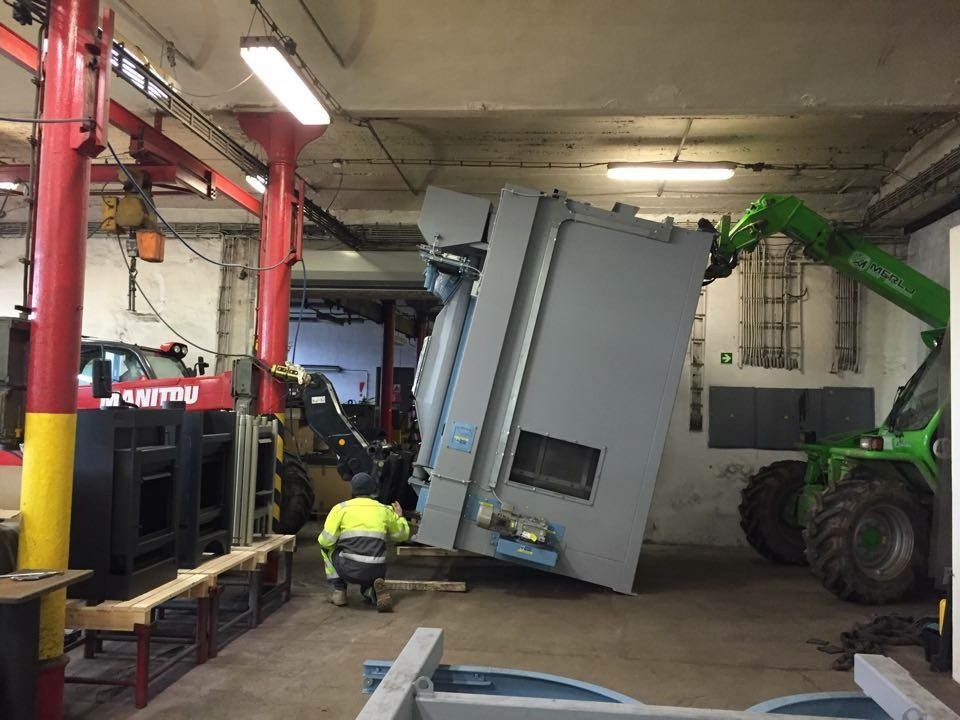 Pohled do výroby firmy. Dovoz tryskacího stroje