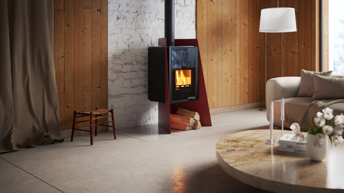 V červeném provedení se nabízí i tento krásný a stylový dřevník