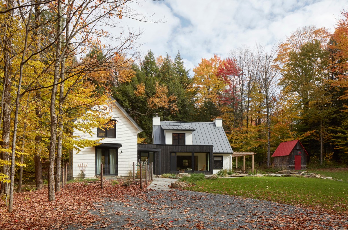 Hlavní hmota domu si ponechala klasickou sedlovou střechu, zatímco nová přístavba má plochou střechu a čisté, moderní linie