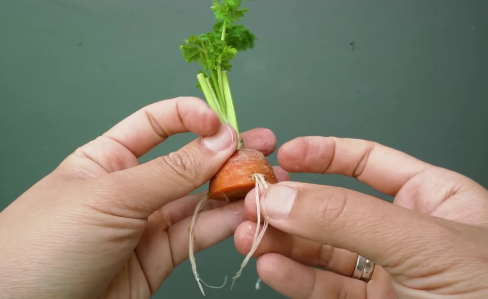 Mrkev ze zbytku nevytvoří nový kořen, ale po zakořenění může dál růst nadzemní část s jedlými listy