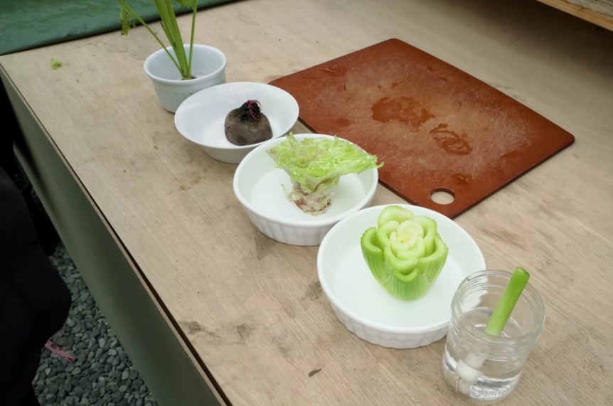 Zbytky jako salát, celer nebo cibulka stačí ponořit do vody, aby začaly během krátké doby znovu vytvářet nové části rostlin