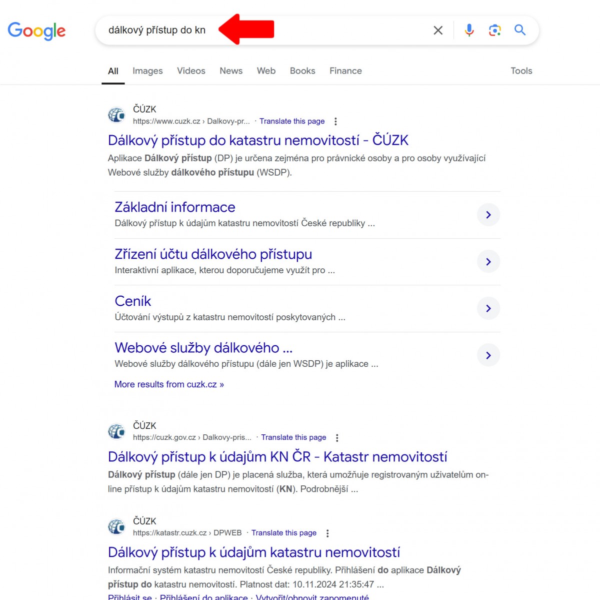 Ve vyhledávači si pro změnu najdeme „dálkový přístup do kn“