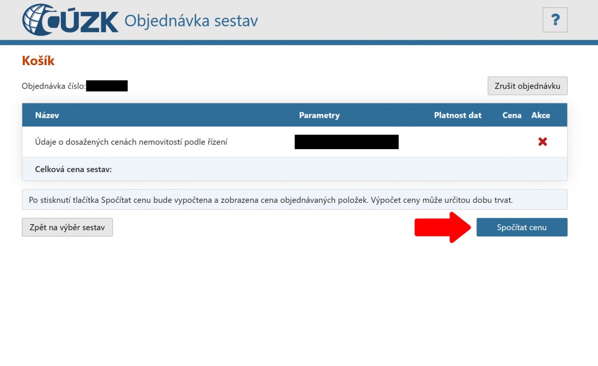 Klikneme na tlačítko spočítat cenu