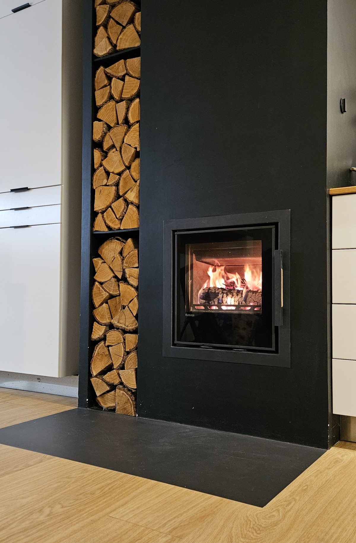 Hlavním záměrem, se kterým vložku pořizovali, bylo udělat si občas pěknou atmosféru a také mít záložní zdroj tepla pro případ výpadku dodávek plynu nebo elektřiny
