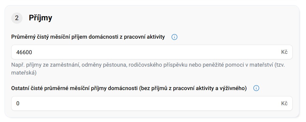 Kalkulačka se ptá na příjem z práce a další příjmy