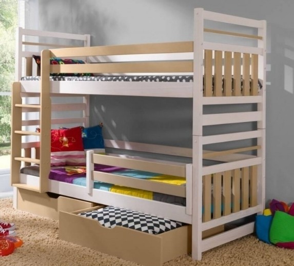 Tato dětská patrová patrová postel Miroslav se zábranou a úložným prostorem je vyrobena z masivní borovice s povrchovou úpravou lak natur. Povrch materiálu je lehce strukturovaný. Postel je možné dodat v přírodním odstínu nebo si ji můžete pořídit v široké nabídce barev moření.