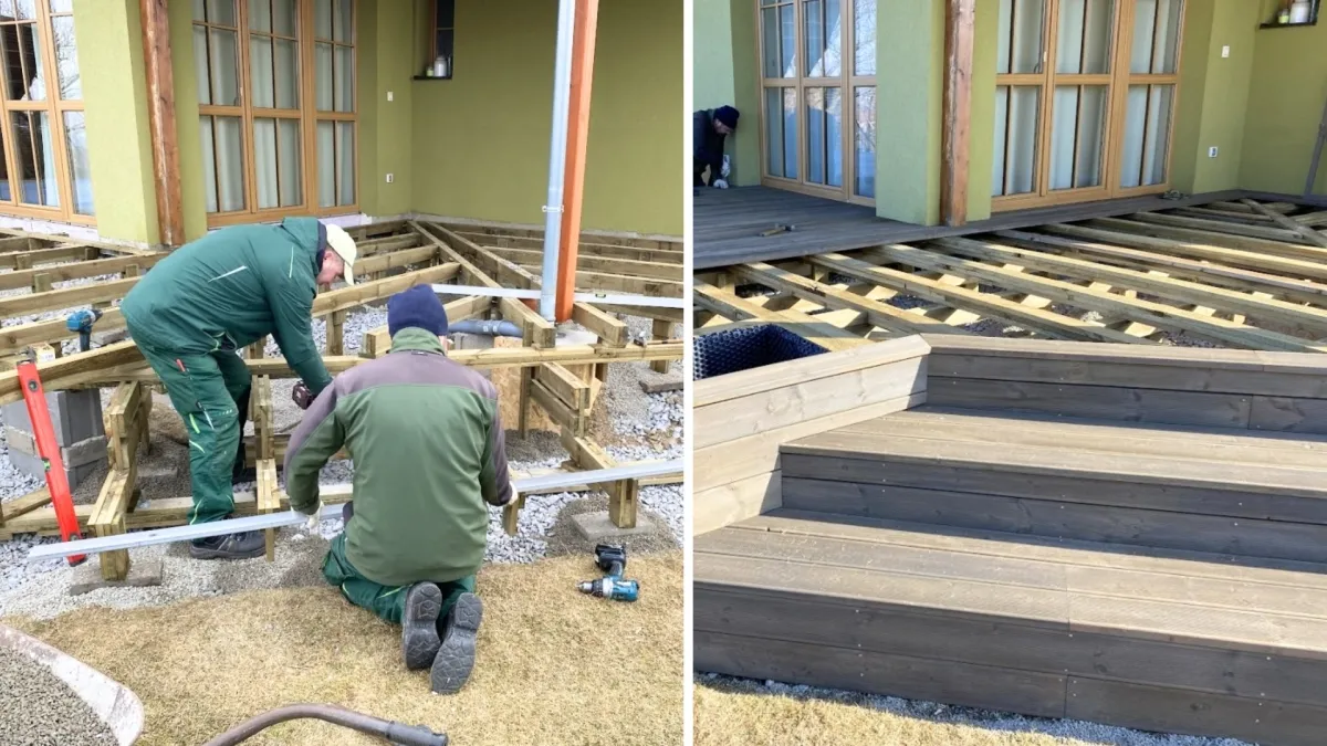 Původní terasa se rozpadla po pár letech. „Ke stavbě nové jsme tentokrát využili speciální dřevo,“ říkají manželé