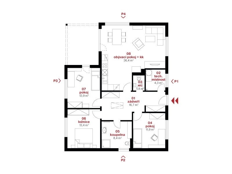 Prohlédněte si náš moderní bungalov s dispozicí 4+kk a velkou, krytou terasou. Ta vám umožní provozovat oblíbené venkovní aktivity, např. grilování, i za nepříznivého počasí.